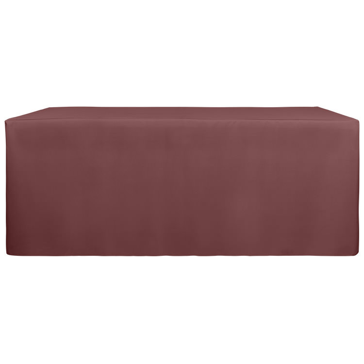100% polyester; Liquid-repellent for hassle-free cleanup; Stretchy fabric for the perfect fit; Serged edges; Resistance to fraying, spills and wrinkles; Includes a free drawstring bag; Stain- and flame-resistant