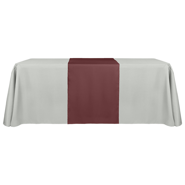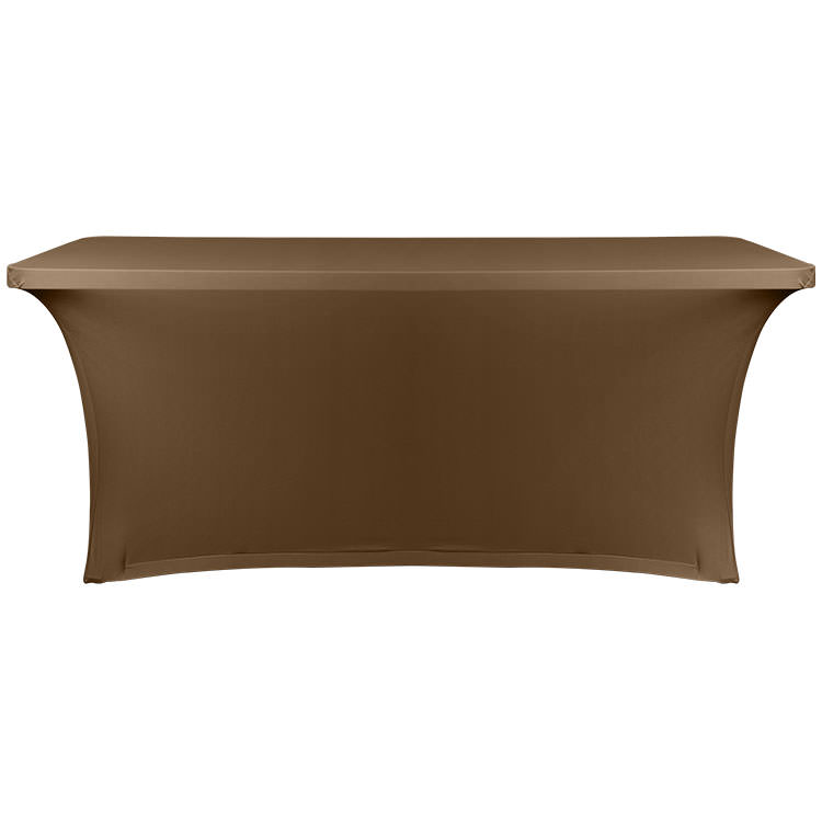 100% polyester; Stain-resistant; Stretchy material that's washable and easy to care for; Includes a free drawstring bag; Your customized logo or design on the front panel; Protects table surfaces; Resistance to flames, fraying and wrinkling; Serged edges