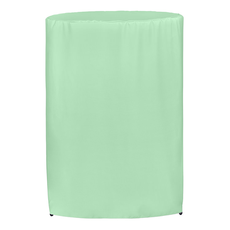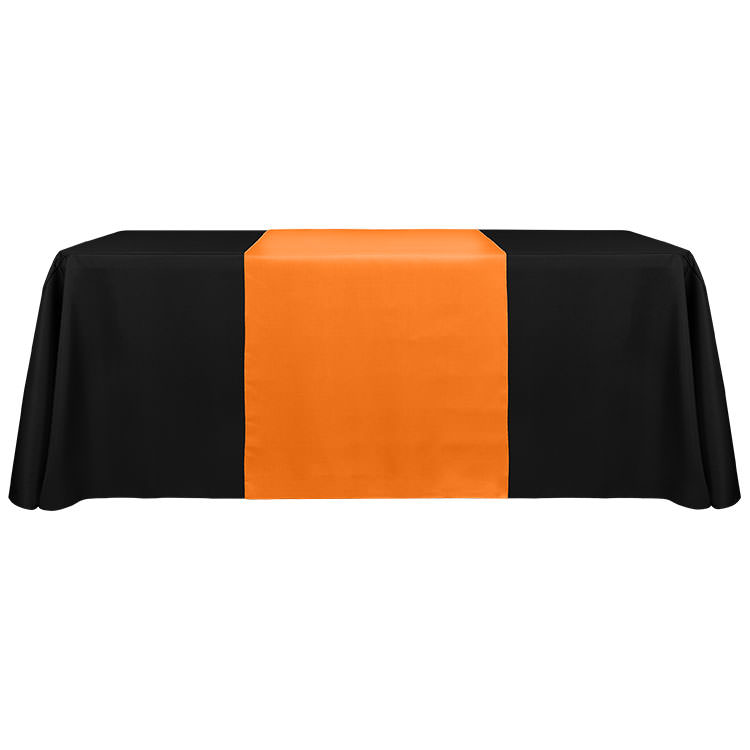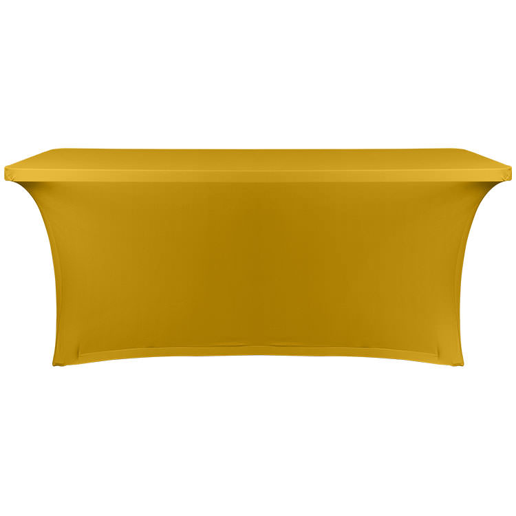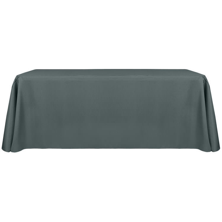 100% polyester; Includes a free drawstring bag; Easy to place storage underneath; Your full-color design on the front panel; Resistant to stains, spills, flames, fraying and wrinkling; Serged edges; Stretchy, fitted material for a professional look