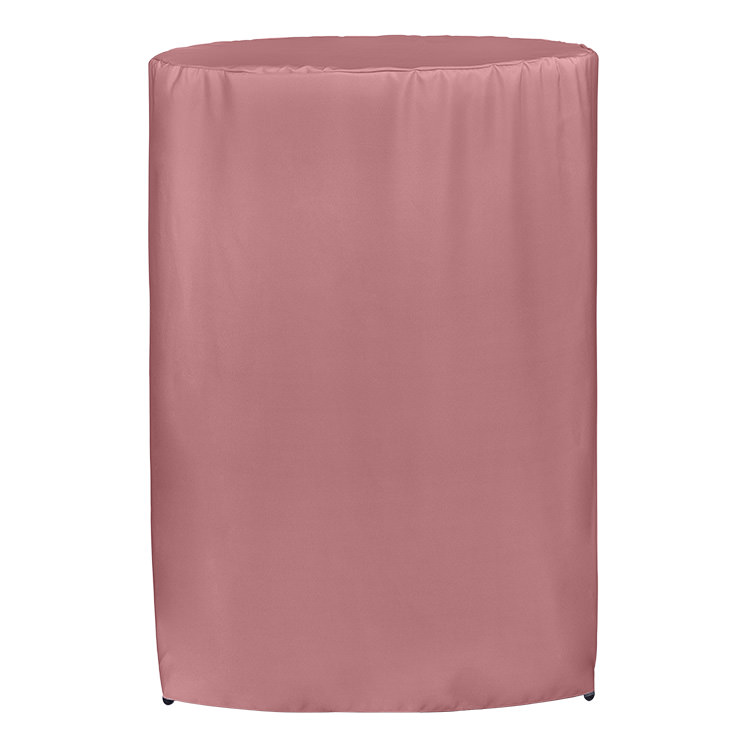 100% polyester; Stretchy fabric with serged edges for professionalism and style; Resistance to flames, stains and fraying; Liquid- and wrinkle-repellent material that's washable; Your customized logo on the front panel; Easy to store items underneath; Includes a free drawstring bag; Open back and rounded corners to prevent bunching