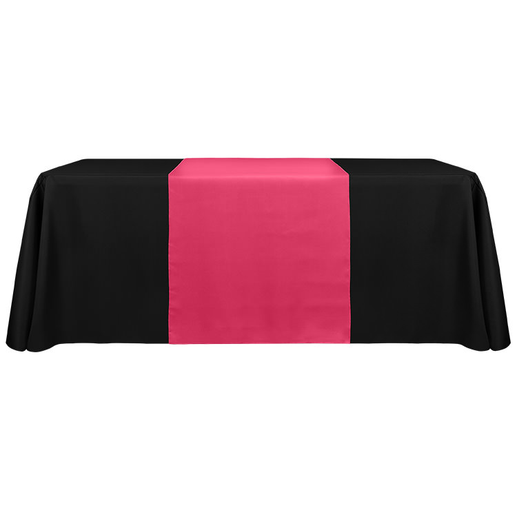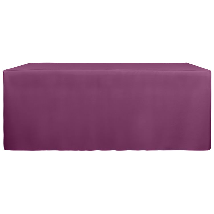100% polyester; Open back makes it easy to place storage underneath; Includes a free drawstring bag; Rounded corners prevent bunching; Your full-color logo or design on the entire table cover; Stretchy, washable fabric with serged edges; Resistance to wrinkles, flames and fraying; Liquid- and stain-repellent