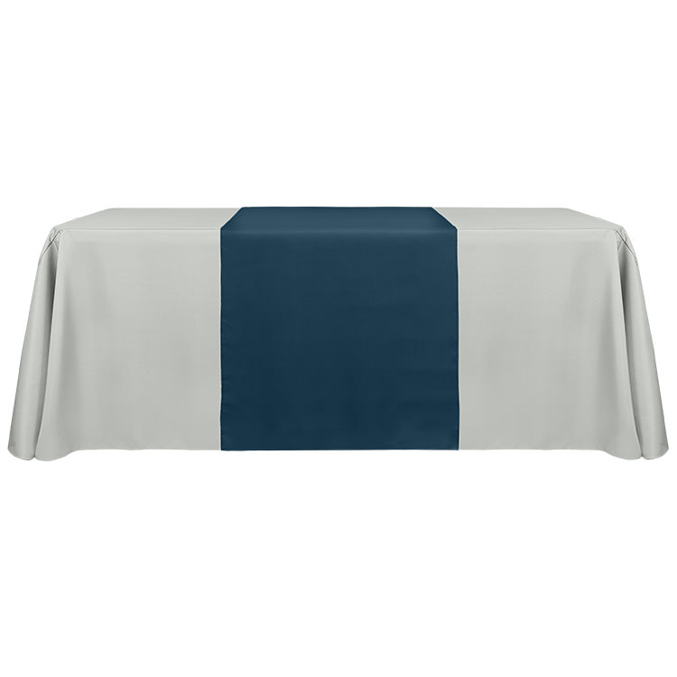 100% polyester; Your full-color logo or design on the entire table runner; Resistant to stains, wrinkles, fraying and flames; Serged edges; Includes a free drawstring bag; Hassle-free cleanup; Liquid-repellent; Stretchy fabric that's washable