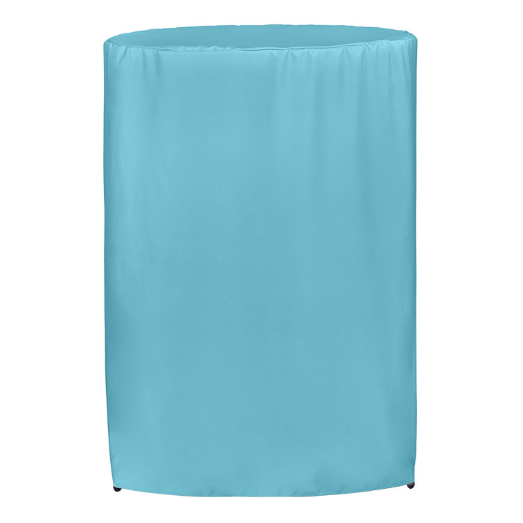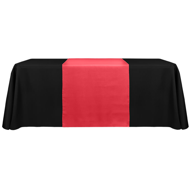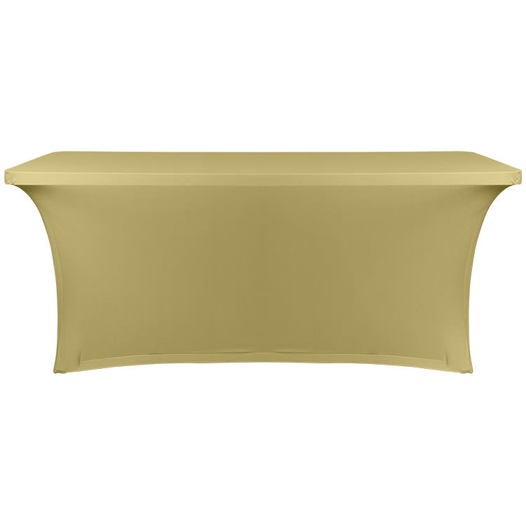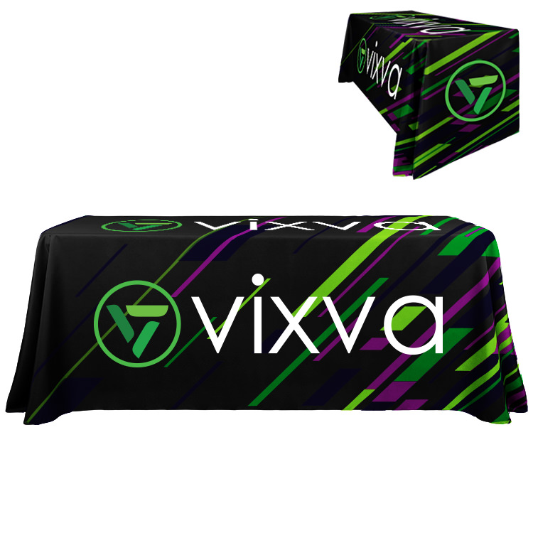 100% polyester; Spill- and wrinkle-resistant; Open back makes it easy to store items underneath; Rounded corners to reduce bunching; Your full-color logo or design on the entire table cover; Includes a free drawstring bag; Washable, stretchy fabric with serged edges that help prevent fraying; Resistance to stains and flames