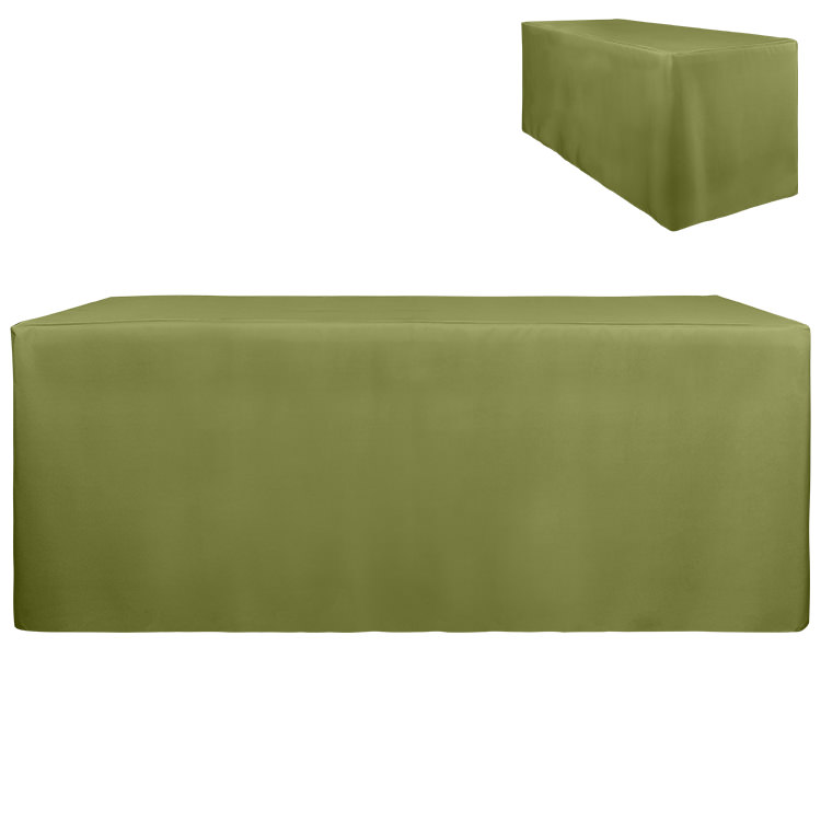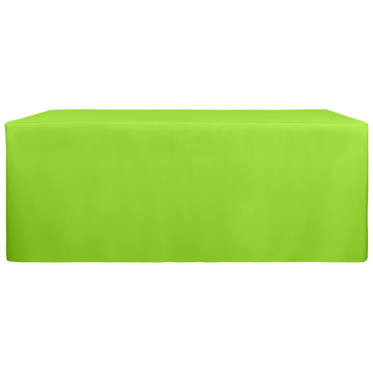 100% polyester; Resistance to stains, flames, fraying, spills and wrinkles; Liquid-repellent; Plenty of space for storage underneath; Your full-color logo on the entire table cover; Stretchy, form-fitting fabric with serged edges for a stylish look; Includes a free drawstring bag