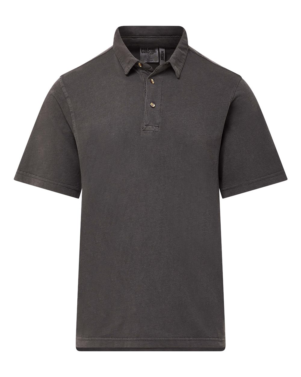 7 oz./yd², 44/44/12 bamboo charcoal/REPREVE polyester/spandex interlock; Athletic fit; Moisture-management properties; Three-button placket; Straight hem; Swannies logo on back yoke;