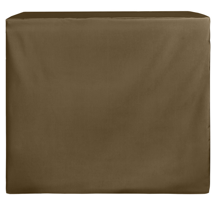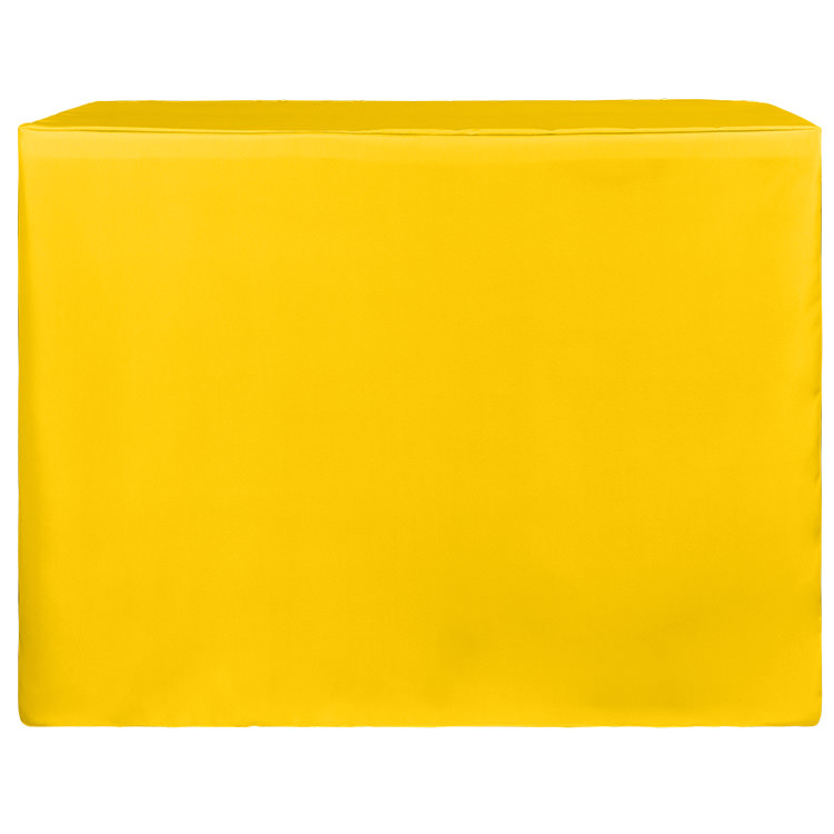 100% polyester; Form-fitting, stretchy fabric for the perfect fit; Resistant to wrinkles, flames and fraying; Serged edges; Repels spills and stains for easy cleanup; Convenient space for storing items underneath; Includes a free drawstring bag