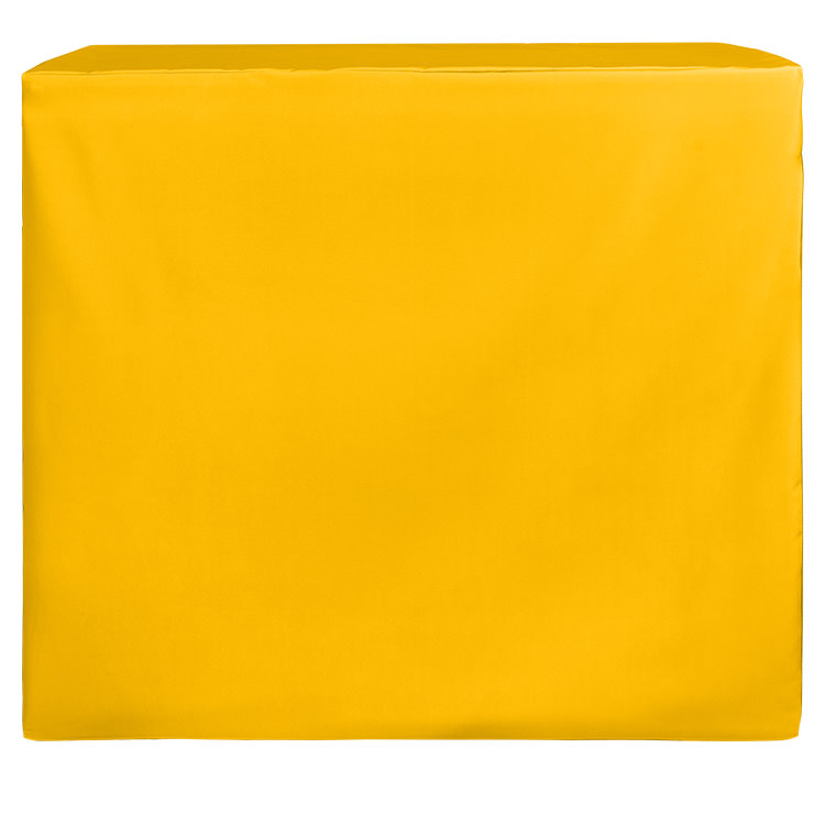 100% polyester; Your personalized logo on the front panel; Liquid-repellent and washable; Stretchy, form-fitted fabric for extra style and professionalism; Resistant to stains, flames, fraying and wrinkling; Easy to place storage underneath; Serged edges; Includes a free drawstring bag
