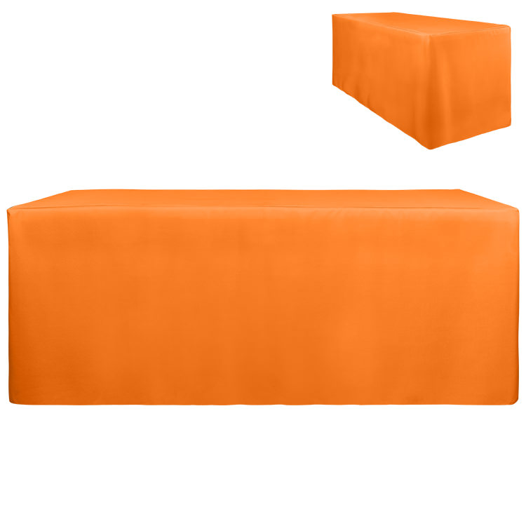 100% polyester; Resistance to stains, flames, fraying, spills and wrinkles; Liquid-repellent; Plenty of space for storage underneath; Your full-color logo on the entire table cover; Stretchy, form-fitting fabric with serged edges for a stylish look; Includes a free drawstring bag