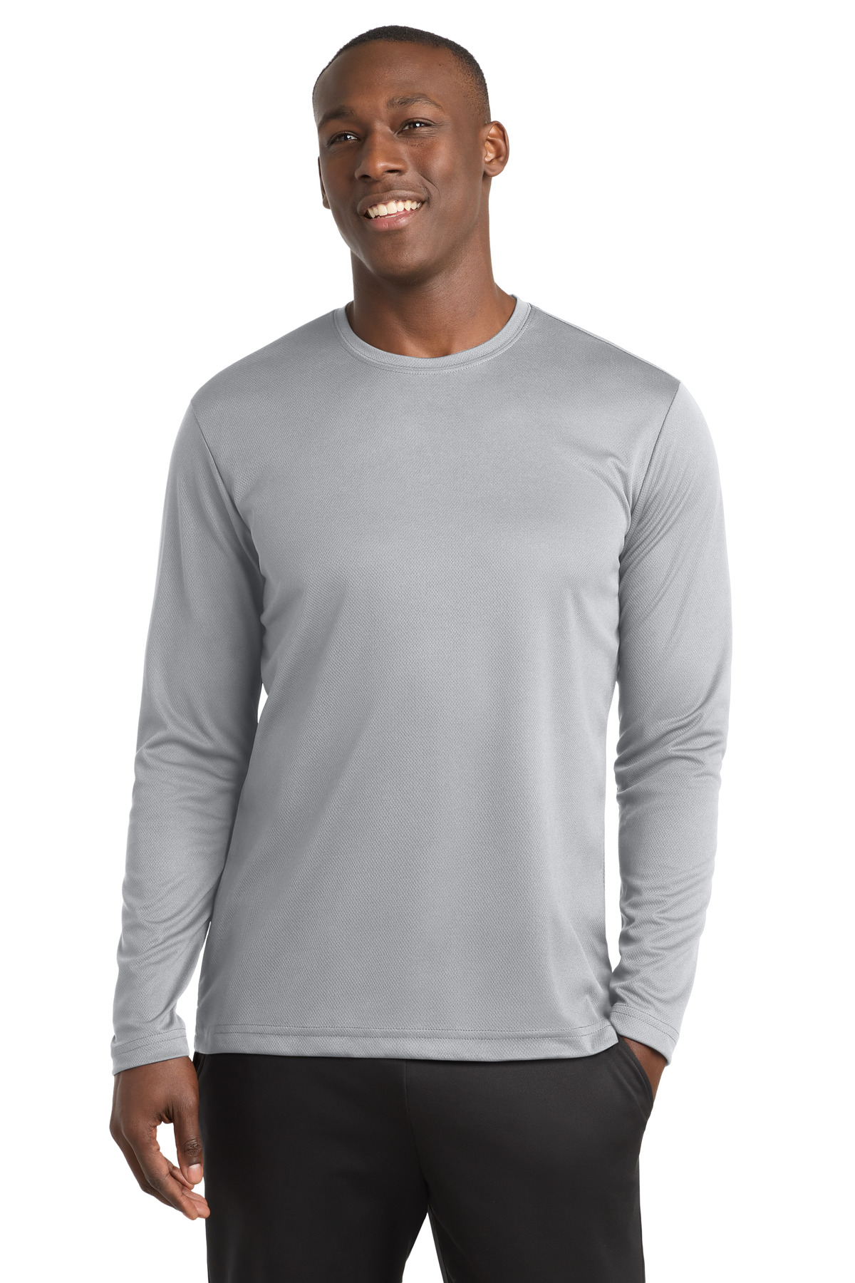 Take the lead in this high-performance long sleeve hoodie with exceptional UV protection and moisture wicking.; 4-ounce, 100% polyester interlock with PosiCharge technology; UPF rating of 50; Tear-away label; Set-in sleeves